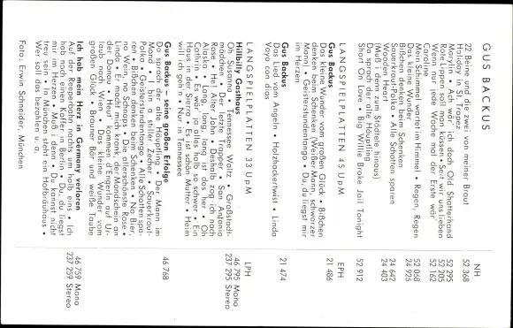 Ak Sänger Gus Backus, Portrait, Autogramm