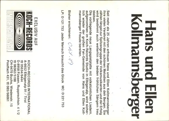 Ak Sänger Hans und Ellen Kollmannsberger, Portrait, Autogramme