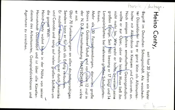 Ak Sänger Heino Conty, Portrait, Autogramm