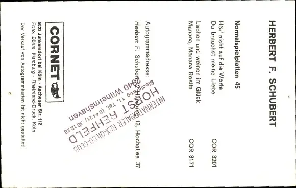 Ak Sänger Herbert F. Schubert, Portrait, Autogramm