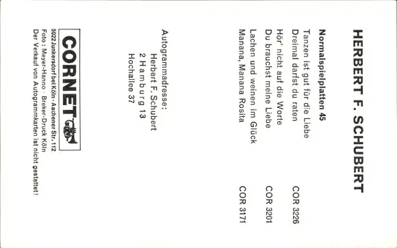 Ak Sänger Herbert F. Schubert, Portrait, Autogramm