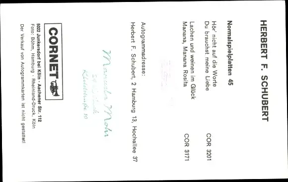 Ak Sänger Herbert F. Schubert, Portrait, Autogramm