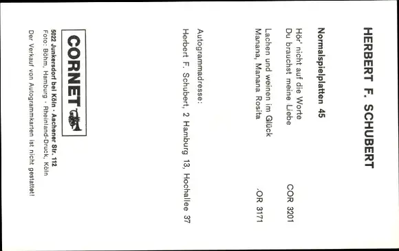 Ak Sänger Herbert F. Schubert, Portrait, Autogramm