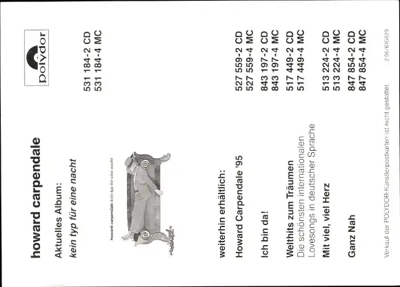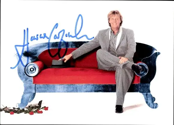 Ak Sänger Howard Carpendale, Portrait, Sofa, Hut, Rosen, Autogramm