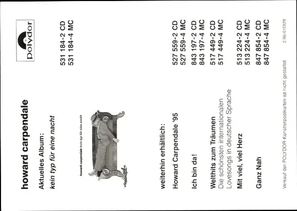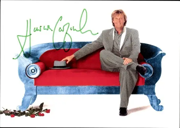 Ak Sänger Howard Carpendale, Portrait, Sofa, Hut, Rosen, Autogramm