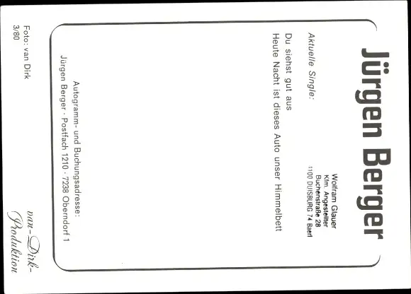 Ak Sänger Jürgen Berger, Mikrofon, Portrait, Autogramm