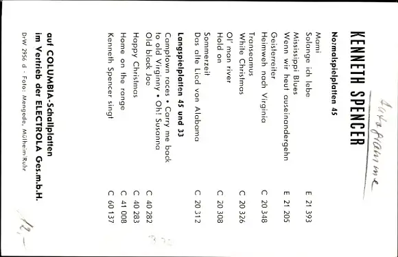 Ak Sänger Kenneth Spencer, Portrait, Autogramm