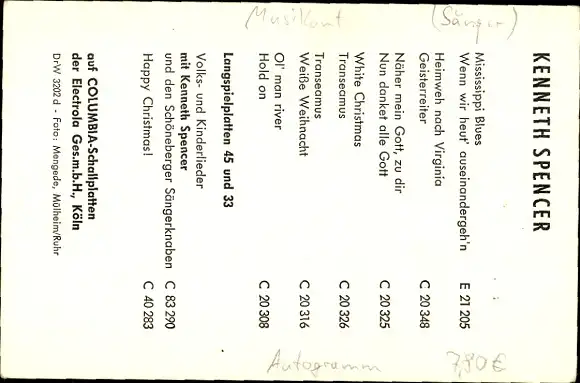 Ak Sänger Kenneth Spencer, Portrait, Autogramm