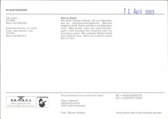 Ak Sänger Klaus Densow, Zeit zu Zweit, Portrait, Autogramm