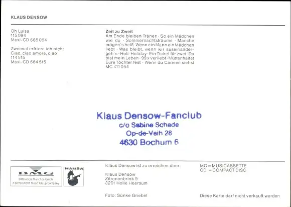 Ak Sänger Klaus Densow, Zeit zu zweit, Portrait, Autogramm