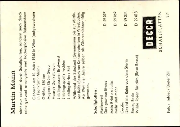 Ak Sänger Martin Mann, Portrait, Autogramm
