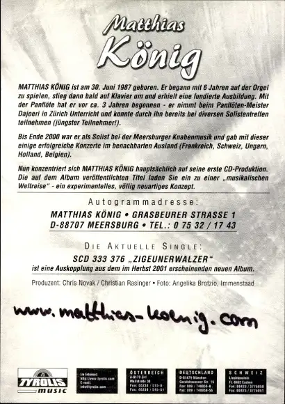 Ak Sänger Matthias König, Portrait, Autogramm