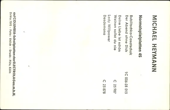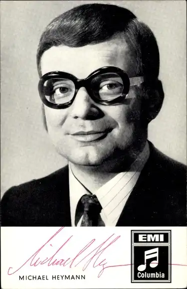 Ak Sänger Michael Heymann, Hornbrille, Portrait, Emi, Columbia, Autogramm