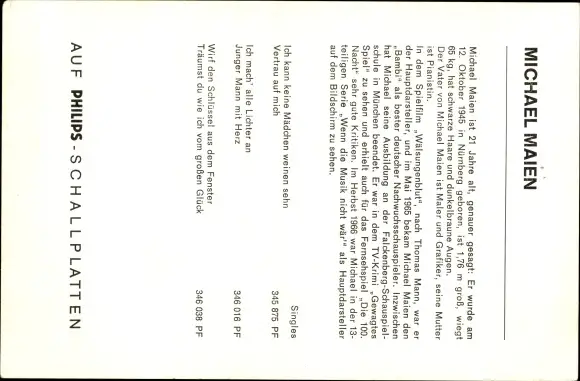 Ak Sänger Michael Maien, Vertrau auf mich, Autogramm
