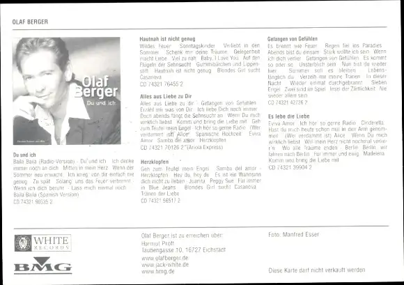 Ak Sänger Olaf Berger, Portrait, Autogramm