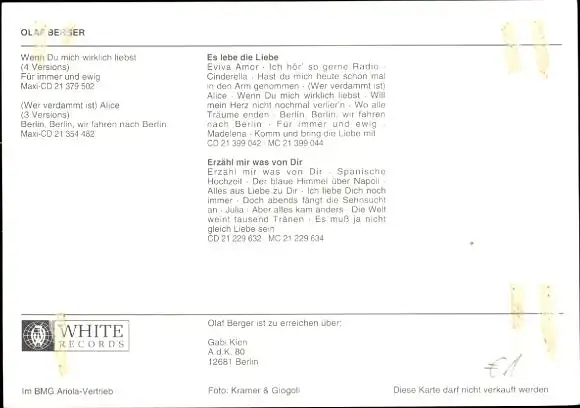 Ak Sänger Olaf Berger, Portrait, Autogramm