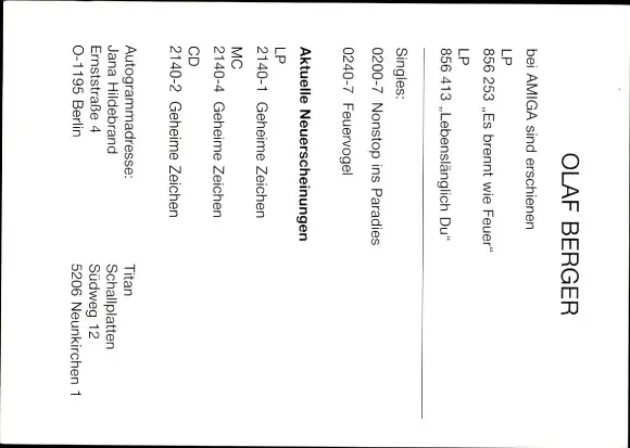 Ak Sänger Olaf Berger, Portrait, Autogramm