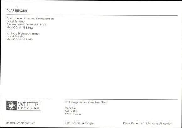 Ak Sänger Olaf Berger, Portrait, Autogramm