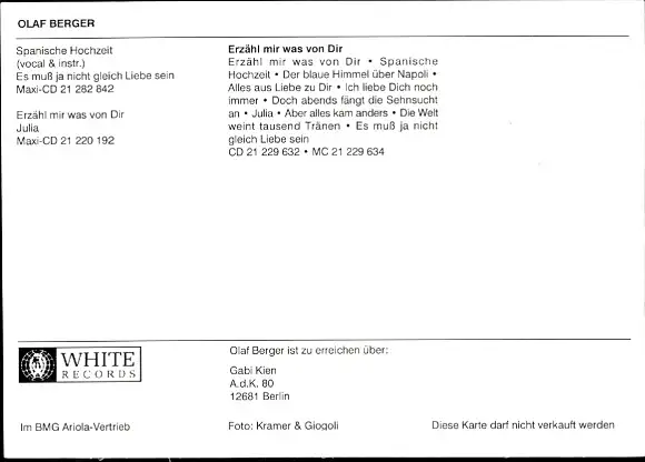 Ak Sänger Olaf Berger, Portrait, Autogramm