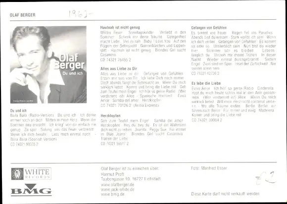 Ak Sänger Olaf Berger, Portrait, Autogramm