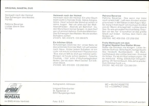 Ak Sänger, Original Naabtal Duo, Portrait, Autogramm