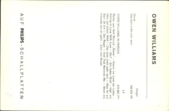 Ak Sänger Owen Williams, Portrait, Autogramm