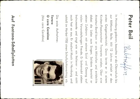 Ak Sänger Peter Beil, Portrait, Autogramm