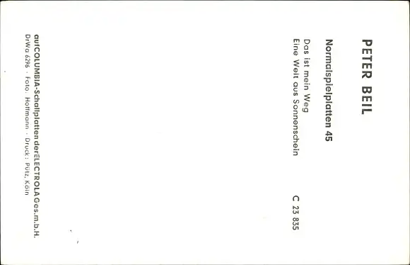 Ak Sänger Peter Beil, Portrait, EMI Columbia Records, Autogramm