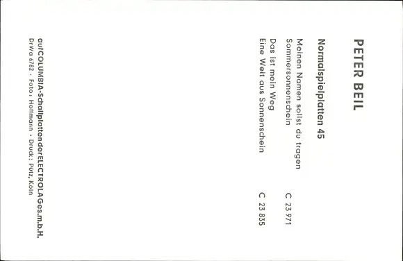 Ak Sänger Peter Beil, Portrait, EMI Columbia Records, Autogramm