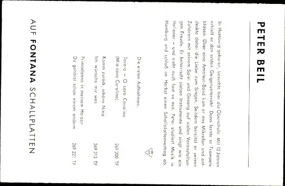 Ak Sänger Peter Beil, Portrait, Fontana, Autogramm