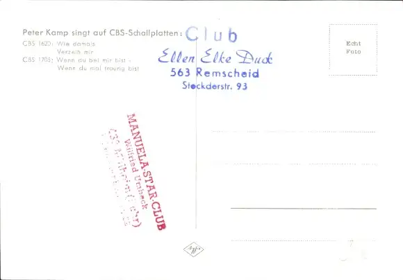 Ak Sänger Peter Kamp, Autogramm