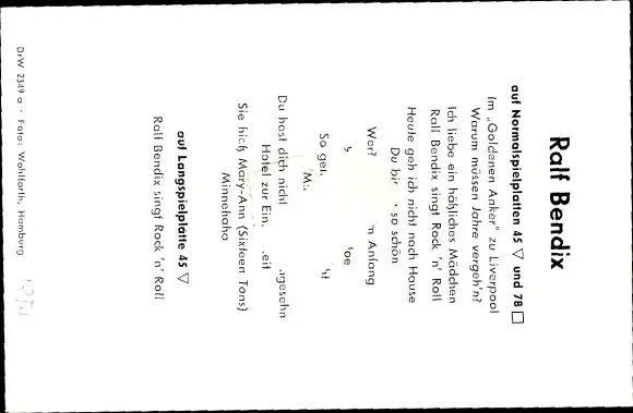 Ak Sänger Ralf Bendix, Autogramm,Heute geh ich nicht...