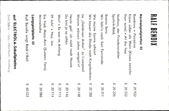 Ak Sänger Ralf Bendix, Autogramm,Heute geh ich nicht...
