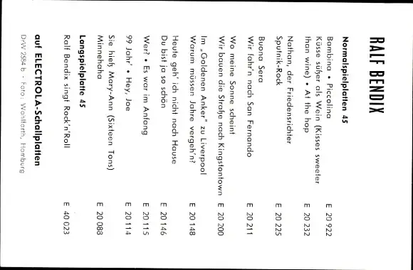 Ak Sänger Ralf Bendix, Autogramm,Heute geh ich nicht...
