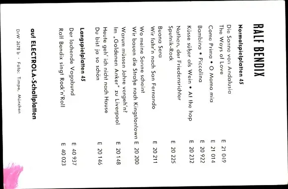 Ak Sänger Ralf Bendix, Portrait, Autogramm
