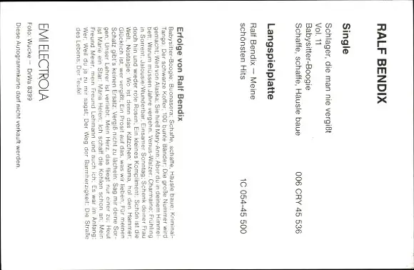 Ak Sänger Ralf Bendix, Portrait, Autogramm
