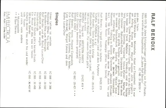 Ak Sänger Ralf Bendix, Portrait, Autogramm
