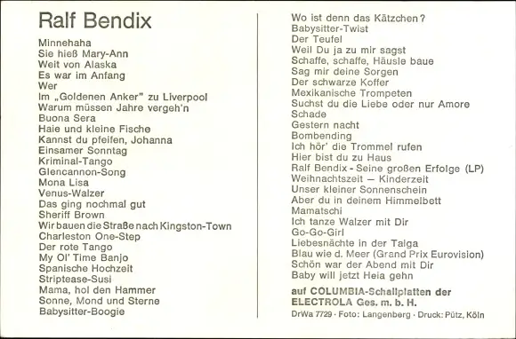 Ak Sänger Ralf Bendix, Portrait, Autogramm, EMI Columbia