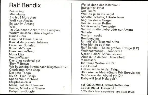 Ak Sänger Ralf Bendix, Portrait, Autogramm, EMI Columbia
