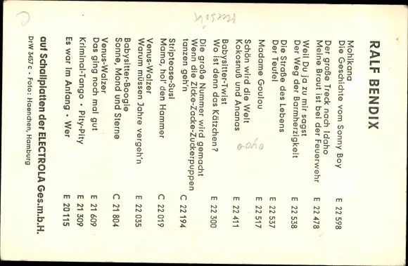 Ak Sänger Ralf Bendix, Portrait, Electrola