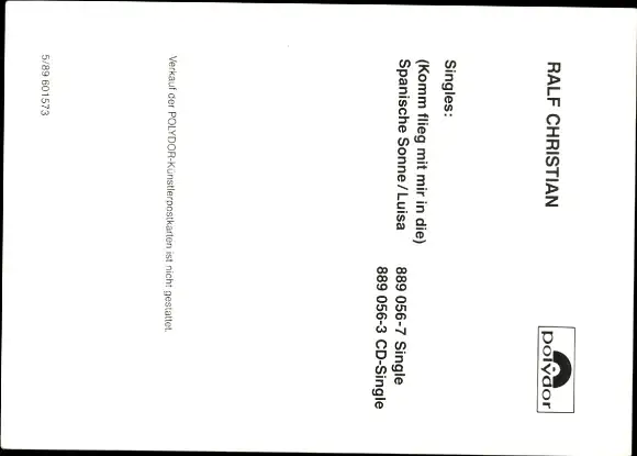 Ak Sänger Ralf Christian, Portrait, Autogramm