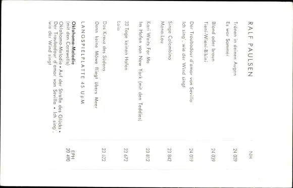 Ak Sänger Ralf Paulsen, Portrait, Polydor Schallplatten