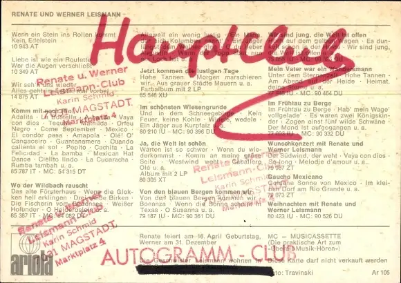 Ak Sänger Renate und Werner Leismann, Portrait, Autogramm