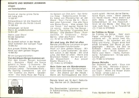 Ak Sänger Renate und Werner Leismann, Portrait, Autogramm