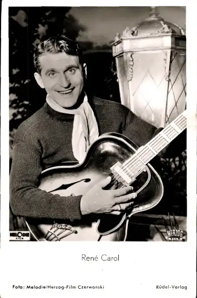 Ak Sänger Rene Carol, Portrait, Portrait mit Gitarre
