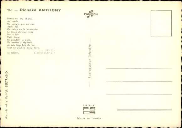Ak Sänger Richard Anthony, Portrait