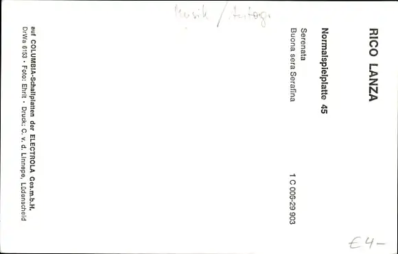 Ak Sänger Rico Lanza, Portrait, EMI Columbia, Autogramm