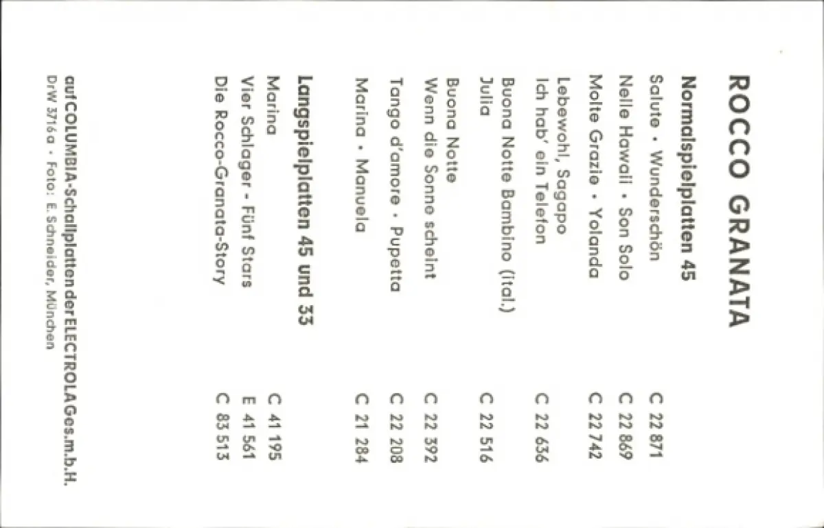 Ak Sänger Rocco Granata, Autogramm