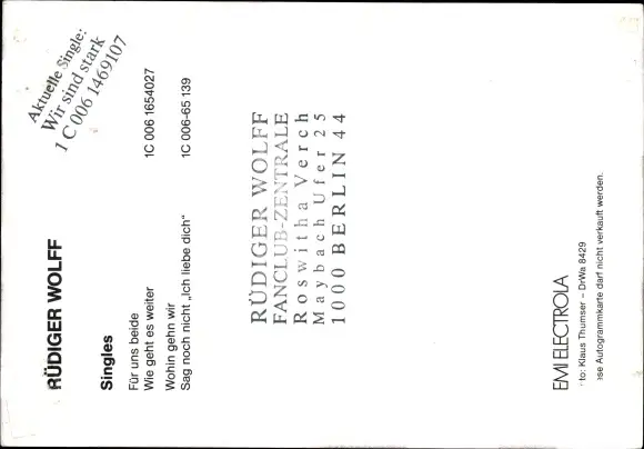 Ak Sänger Rüdiger Wolff, Portrait, Autogramm