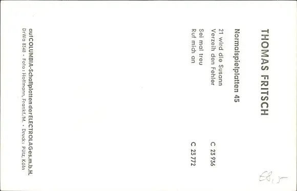 Ak Sänger Thomas Fritsch, Portrait, EMI Columbia Records, Autogramm